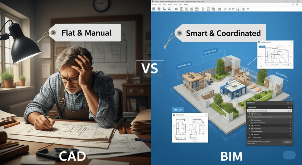 Understanding bim vs cad starts with comparing how data is handled. In CAD, drawings are flat and separate. In BIM, all views are linked. Change a wall in one place, and it updates everywhere. This saves time and avoids confusion. BIM is also better at detecting clashes between systems before construction begins.